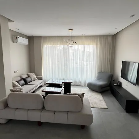 The 200 m² Sela 2 Apartment Cairo is located 2.5 km from the Khufu Ship and about 10 minutes' drive from the Giza Necropolis. Access to a private pool ensures a more relaxing stay.